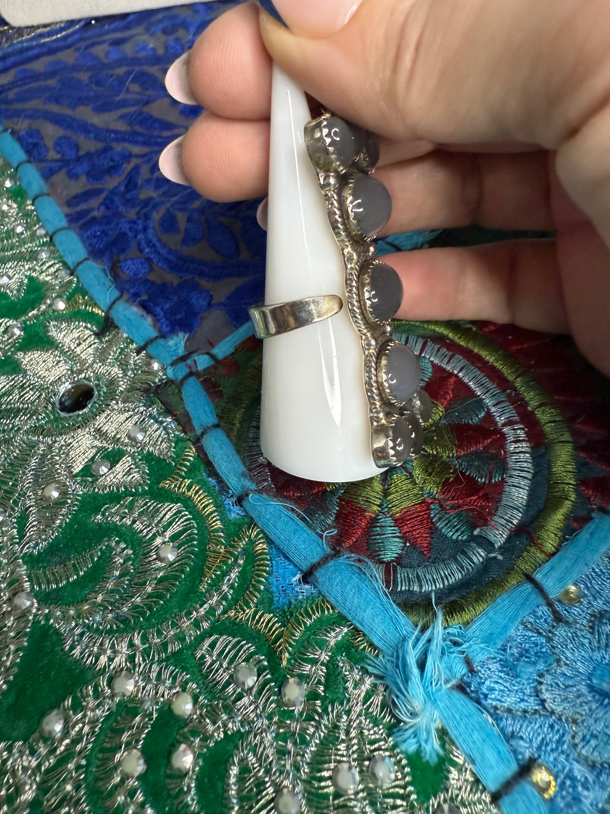 Grey moonstone ring adjustable size 6-8 solid Sterling handmade in India